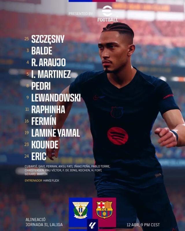 中场:19-亚马尔,24-加西亚(80' 库巴西),16-费尔明(67' 加维),8-佩德里,11-拉菲尼亚